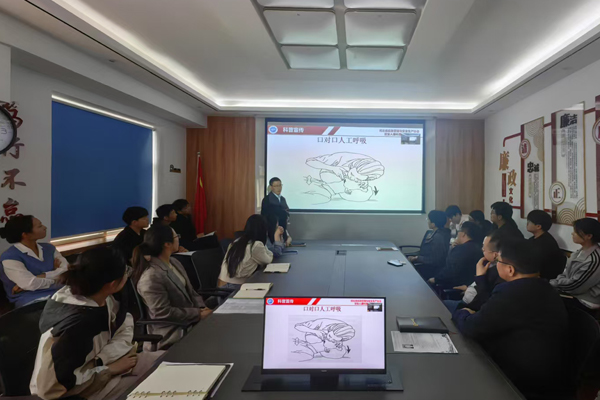 為確保取得實效,黨群辦公室人員根據職工年齡分層分布的特點,與科長代表、項目經理多次聯系,提前了解職工想要學習和掌握的健康知識,作為重點講解內容。經過多方溝通,黨群辦公室人員了解到職工想要學習心肺復蘇、黃金四分鐘急救、正確操作自動體外除顫儀、海姆立克急救,以及慢性心血管疾病前期癥狀識別、心梗腦梗突發時如何自救、肩周炎、頸椎炎、腰肌勞損等醫學知識,便將收集的意見和建議進行歸納總結,反饋給授課老師。老師根據意見建議,制作貼合職工需求的課件。講座分為健康知識講解、現場答疑解惑、實操練習三個環節,采用遞進式講解的方法,確保職工聽得懂、學得會、用得上。