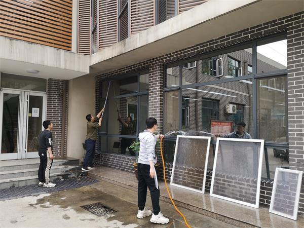 本次活動主要針對設計院的公共衛生區域。先是擦玻璃,職工孟榮榮說:“用報紙擦吧,以前都用報紙擦,擦得很干凈。”“那都是老黃歷了,現在都用擦玻璃神器啦,我早準備好了。”趙蓓說。只見趙蓓拿出自帶了“刮水”功能的擦玻璃神器,沾上洗潔精水,吸附到玻璃窗上,不一會兒就把玻璃擦得干干凈凈。一樓設計室的外窗高,綜合辦準備了加長桿的玻璃刮子,司南帶領幾名青年職工認真擦拭,使窗戶變得潔凈透亮。接下來打掃辦公區域,職工們不放過一個盲區、不落下一個角落。大家對辦公室、樓道、衛生間的衛生死角進行清掃、噴灑消毒;對打印機、飲水機、儲物柜等公用設備進行擦拭消毒;對門把手、沖水按鈕、水龍頭開關等擦拭消毒。室內清理完后清理小花園,大家拿著掃把、鏟子等工具,清掃拔除雜草,撿拾花池的雜物,清理衛生死角,經過兩個小時的勞動,辦公環境內外煥然一新。